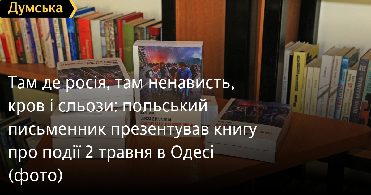 Презентація нової книги про події 2 травня 2014 року в Одесі відбулася в науковій бібліотеці імені Михайла Грушевського. Гості заходу прийшли поспілкуватися з польським письменником, гідом, волонтером, автором путівників Одесою та Україною і просто давнім другом нашого міста Борисом Тинкою. Назва книги — «2 травня. Кривавий слід «русской весны». Цей твір — не тільки розповідь про те, як патріотичні сили відстояли Одесу, а й екскурс в історію, в якому автор пояснює, чому відбулися ці події. Робота над книжкою, за словами Бориса Тинки, розпочалася після повномасштабного вторгнення рф в Україну, а поштовхом став подарунок одного одеського журналіста з «Групи 2 травня», яка займалася розслідуванням обставин того, що сталося. «Цей подарунок став своєрідною точкою неповернення. «Група 2 травня» чудово попрацювала, і я вирішив зайнятися цією темою, щоб прояснити для поляків, як працює російська пропаганда», — розповів автор. Він додав, що цим питанням дуже вправно маніпулюють російські ЗМІ, тому деякі люди і зараз до кінця не розуміють, що сталося того дня. «Російська пропаганда ніколи не згадує про те, що робилося на Грецькій площі, для них головна картинка — це палаючий будинок профспілок. У нас у Польщі багато хто так і думав, що невинних людей загнали туди і підпалили», — наголосив Тинка. У процесі роботи над книгою Борис поговорив із десятками людей, навіть пропонував зустрітися представникам другої сторони тих подій, але вони в останній момент відмовилися. Письменник наголосив, що російське керівництво не полишає мрії захопити наше місто, а тема про події 2 травня постійно мусується російським диктатором у своїх виступах. «Один із моїх друзів якось сказав, що якби в Одесу тоді зайшли російські війська, тут були б події набагато страшніші, ніж у Бучі. Там, де з'являється росія — там завжди ненависть, кров і сльози», — зазначив автор книги. Керівник Південного міжрегіонального відділу Українського інституту національної пам'яті Сергій Гуцалюк заявив, що роспропаганда має дуже багато можливостей поширювати неправду про події 2 травня. «Це було одне з перших російських ІПСО про так звану «Одеську Хатинь». Книжка Бориса реконструює події і повністю спростовує цю брехню, в яку багато поляків повірили, не розуміючи суті подій в Одесі. Тому вихід книги дуже важливий», — зазначив Сергій Гуцалюк. Книгу поки що видано тільки в Польщі накладом лише 300 примірників, але депутат Одеської міськради Петро Обухов сподівається, що її перекладуть українською мовою. «Я вдячний Борису за його величезну працю з розвінчання російської брехні щодо подій 2 травня 2014 року. Сподіваюся, його книжку перекладуть українською та іншими мовами, адже навколо цих подій росія наплодила безліч теорій змови, в які досі багато хто вірить», — заявив депутат. Фото Сергія Смоленцева Помітили помилку? Виділяйте слова з помилкою та натискайте control-enter