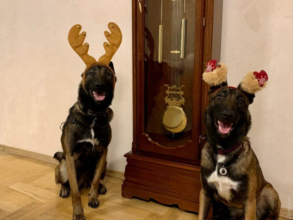 Сотрудники Государственной таможенной службы Украины провели флешмоб – фотографировали своих служебных собак в новогоднем декоре.
