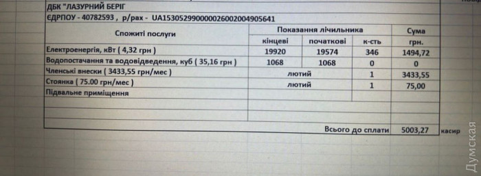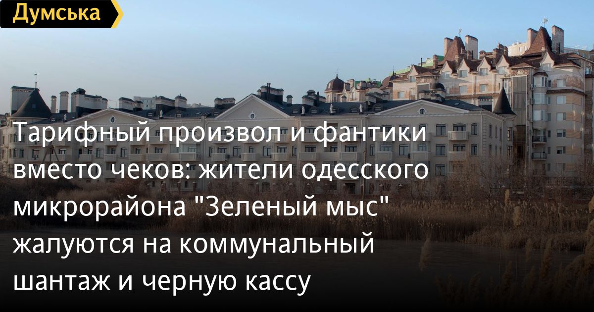 Тарифный произвол и фантики вместо чеков: жители одесского микрорайона «Зеленый мыс» жалуются на коммунальный шантаж и черную кассуИзнанкой престижного поселка «Зеленый мыс» поделились с «Думской» местные жители, пожаловавшиеся на управляющую компанию. Люди заявляют, что их превратили в бесправных заложников группы лиц, которые под видом обслуживания домов выкачивают миллионы. По словам инициативной группы, управление микрорайоном полностью узурпировано ОК ЖСК «Південна будівельна компанія». Эта структура замкнула на себе все: от строительства до сбора денег. Жители утверждают, что реального контроля над финансовыми потоками нет, а владельцы квартир фактически лишены права голоса в управлении собственным имуществом. «Мы платим, но не управляем. Мы заказываем услуги, но получаем хамство и угрозы отключения от коммуникаций», — делятся наболевшим жильцы. Несмотря на статус элитного жилья, финансовая дисциплина в микрорайоне находится на уровне стихийного рынка, жалуются местные. При оплате услуг в кассе жильцам выдают не фискальные документы, а клочки бумаги. В них в одну кучу свалены свет, вода и загадочные членские взносы. При этом договоры у людей подписаны с «Південна будівельна компанія», но деньги заставляют перечислять на счета ДБК «Лазурний берег». На каком основании сменился получатель средств без переоформления документов — администрация не объясняет.