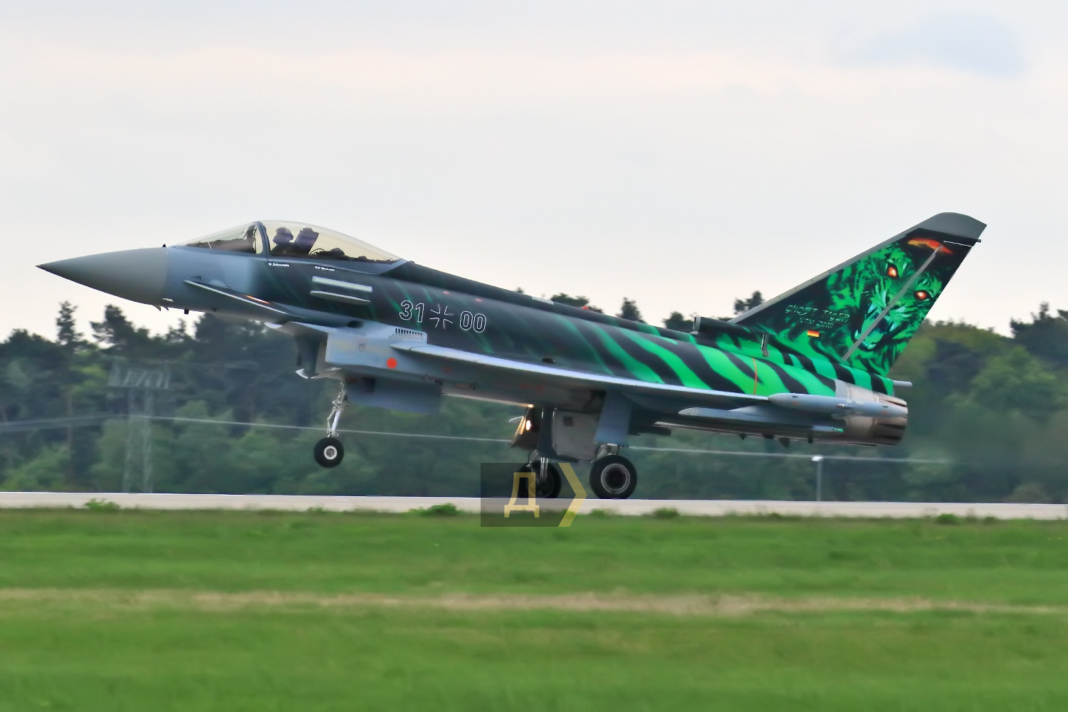 Під фюзеляжем розташовані повітрозабірники двох двигунів Eurojet EJ200, спеціально створені для «Тайфуна». Розробники запевняють, що з ними літак легко переходить на «надзвук» без увімкнення форсажу і має найвищу тягоозброєність (відношення маси літака до тяги двигунів) порівняно з конкурентами («Рафаль», F-16, F-18, «Гріппен»).