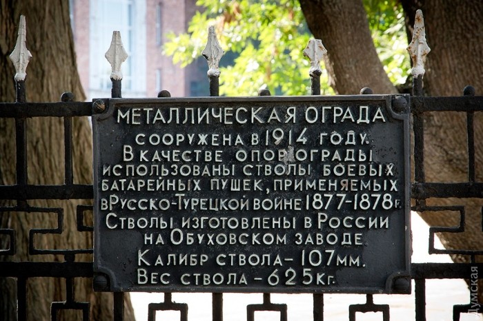 Отдельно стоит рассказать о поистине уникальной ограде «артухи», созданной еще в 1914 году. Опорами ограды служат стволы 107-мм пушек образца 1877 года, которые принимали участие в предпоследней русско-турецкой войне. Впрочем, коммерсанты и тут постарались, передвинув часть ограды так, чтобы она не мешала построить заправку.