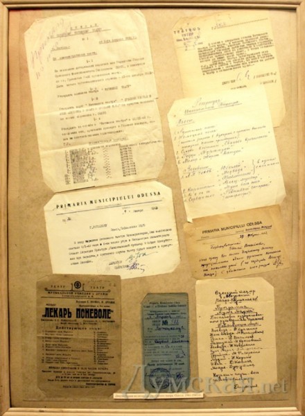 Малоизвестные страницы из истории одесских театров периода оккупации, в частности, судьбы артистов, эстрадных исполнителей, руководителей творческих коллективов приоткрылись для посетителей выставки в экспонатах — уникальных сохранившихся фотографиях, рисунках, документах и личных вещах. Эти материалы частично обнаружены в музейных фондах, частично предоставлены Одесским ТЮЗом, коллекционерами Анатолием Дроздовским и Михаилом Пойзнером.