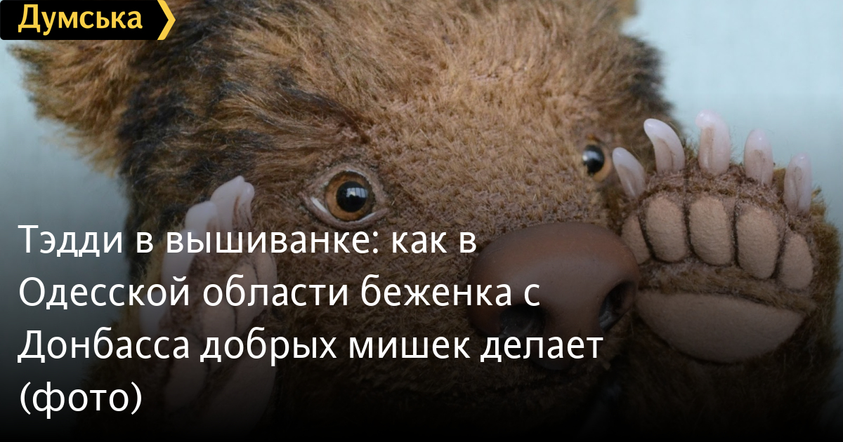 - Сейчас я делаю своих мишек. Когда я начинала шить, то пользовалась выкройками, доступными в Интернете. Например, шила по ним старого довоенного немецкого мишку. Есть рассказы и воспоминания, что солдаты брали с собой этих мишек в рюкзаки. И всю войну с собой проносили эту частичку дома. У меня в Луганске остался мой мишка. Очень старый. Папа на чердаке нашел. Я достала из него всю труху. Постирала. Набила. Поменяла крепления. Я его реанимировала. Папа теперь с ним каждое утро здоровается. Отец там остался…