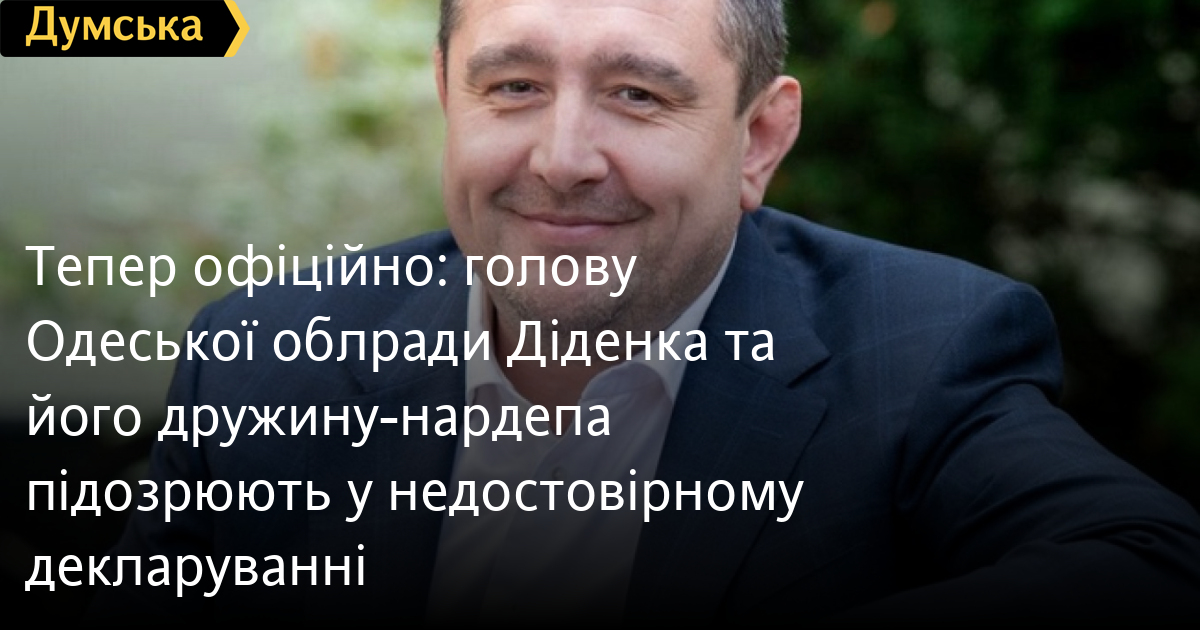 Тепер офіційно: голову Одеської облради Діденка та його дружину-нардепа підозрюють у недостовірному декларуванніІнсайд «Думської» підтвердився — голові Одеської облради Григорію Діденку та його дружині-нардепу від «Слуги народу» Юлії Діденко повідомили про підозру в недостовірному декларуванні. Як повідомили в пресслужбі НАБУ, за даними слідства, чиновник і народний депутат у своїх щорічних майнових деклараціях за 2021-2023 рр. не задекларували майно на суму понад вісім млн грн. Крім того, за матеріалами НАБУ, прокурор Спеціалізованої антикорупційної прокуратури подав позов про визнання необґрунтованими активів подружжя на суму майже п'ять млн грн для їх стягнення на користь держави. Слідчі встановили, що голова облради та його дружина-нардеп у 2021-2024 роках придбали майна майже на 5 млн грн без підтверджених джерел доходу. Серед активів – внески за апартаменти та два автомобілі Audi SQ8 (2021 і 2024 років випуску). Дії підозрюваних кваліфіковано за ч. 2 ст. 366-2 Кримінального кодексу України. Нагадаємо, нещодавно ми писали, що Григорій Діденко може стати першим офіційно визнаним корупціонером в історії обласної ради. Перші обшуки у подружжя Діденко пройшли трохи понад рік тому. З банківської комірки вилучили вміст, м'яко кажучи, небідних людей. Потім була пауза, порушена лише епізодом навколо Палацу спорту (ті ж обшуки НАБУ, але вже не у самого Діденка, а через будки навколо спортивної арени) ― який голосно спалахнув і так само швидко згас. Покровитель Діденка, Ілля Павлюк («король контрабанди» з Буковини, контролює близько 20 нардепів), в приватних розмовах запевняв, що «порішав з НАБУшниками» і голову Одеської облради чіпати не будуть. Однак зовсім недавно ВАКС заарештував все майно подружжя Діденка, включаючи власність Любові та Костянтина Сироти, мами Юлії та її брата (того самого заступника директора комунального підприємства з управління адмінбудівлею № 2, «скляшкою»). Ми багато про це писали, зокрема про елітне авто з супер-елітними номерами або про успішний сімейний підряд. СМЕРТЬ РОСІЙСЬКИМ ОКУПАНТАМ! Помітили помилку? Виділяйте слова з помилкою та натискайте control-enter