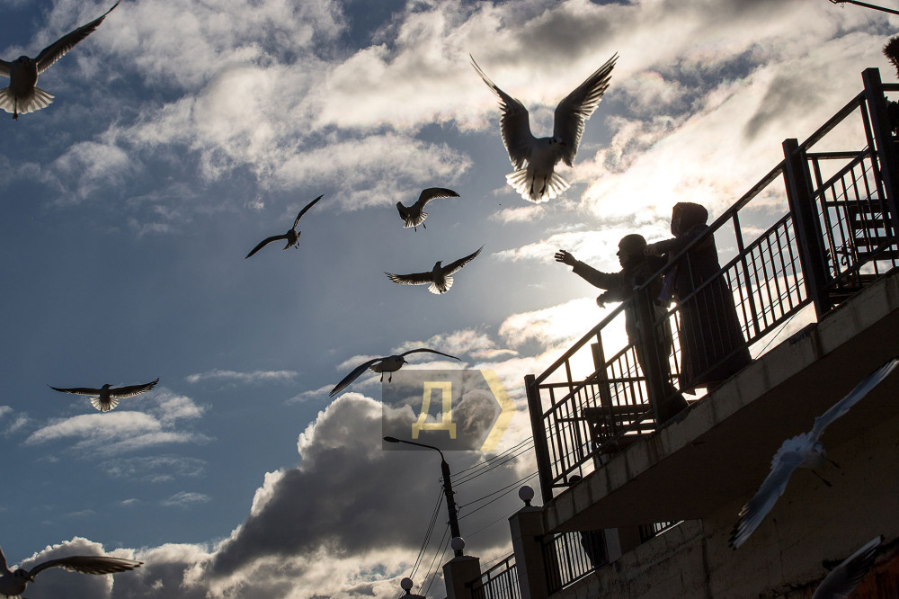 Одесситы с удовольствием проводят время у моря, кормят чаек и покоряют волны на сапбордах.