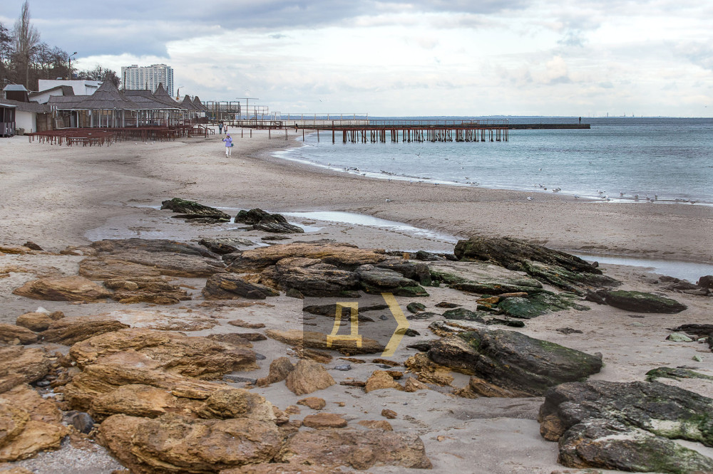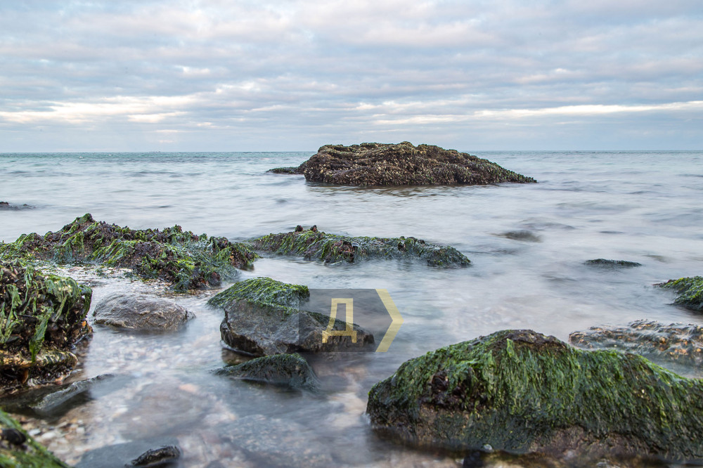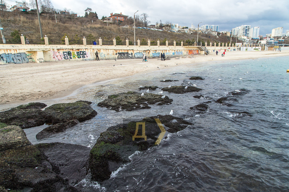 Сорвавшийся ветер обнажил одесские пляжи, заставив на удивление спокойное море отступить и явить взглядам отдыхающих облепленные мидиями камни.