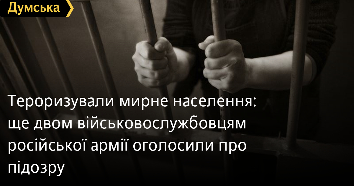 Тероризували мирне населення: ще двом військовослужбовцям російської армії оголосили про підозруДвом військовослужбовцям армії рф повідомлено про підозру у порушенні законів та звичаїв війни. Про це повідомляє Офіс генпрокурора. За даними слідства, підозрювані вчиняли злочини на території селищ Бородянка та Макарів Бучанського району Київської області під час тимчасової окупації населених пунктів. Вони застосовували до цивільного населення тортури, мордування, образливе, принижуюче та жорстоке поводження, тероризуючи мирне населення, вчиняли мародерство та неодноразово здійснювали обстріли житлових будинків і об’єктів цивільної інфраструктури, які не є військовими цілями та не використовувались для військових потреб. СМЕРТЬ РОСІЙСЬКИМ ОКУПАНТАМ! Помітили помилку? Виділяйте слова з помилкою та натискайте control-enter |