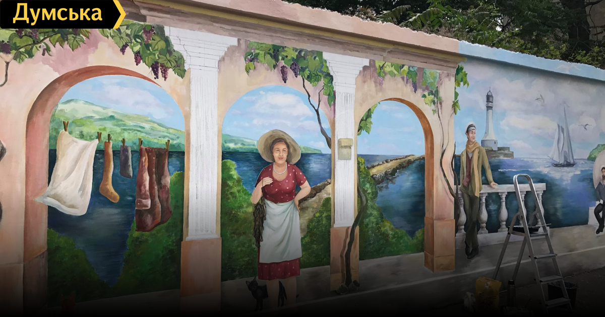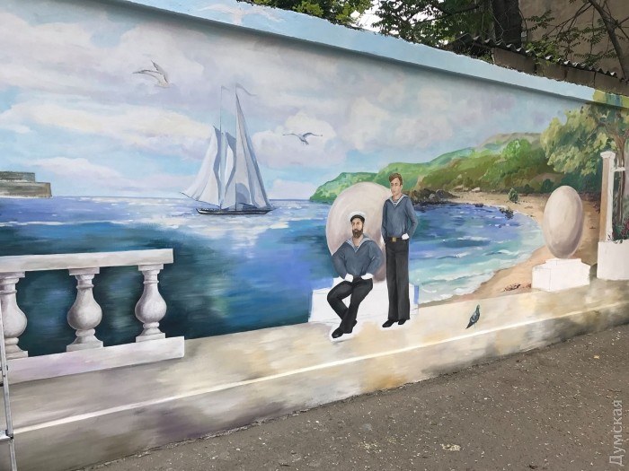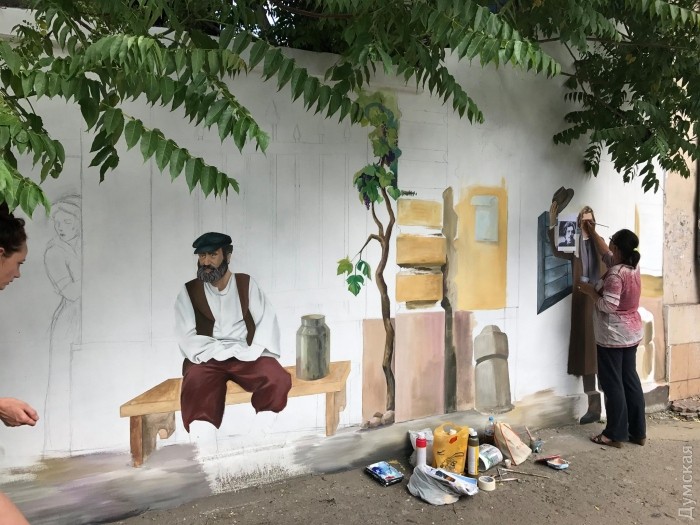 На Канатной улице между Большой и Малой Арнаутской заканчивают создавать стрит-арт, персонажами которого стали герои, имеющие отношение к Одессе.