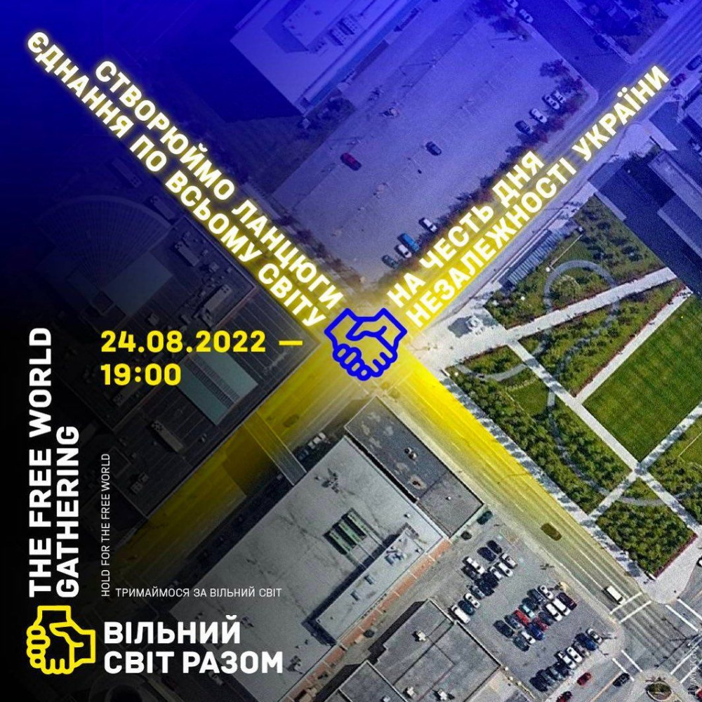 У День Незалежності, 24 серпня, українці в різних країнах вийдуть на центральні вулиці міст і візьмуться за руки, щоб утворити живі ланцюги — #TheFreeWorldGathering.