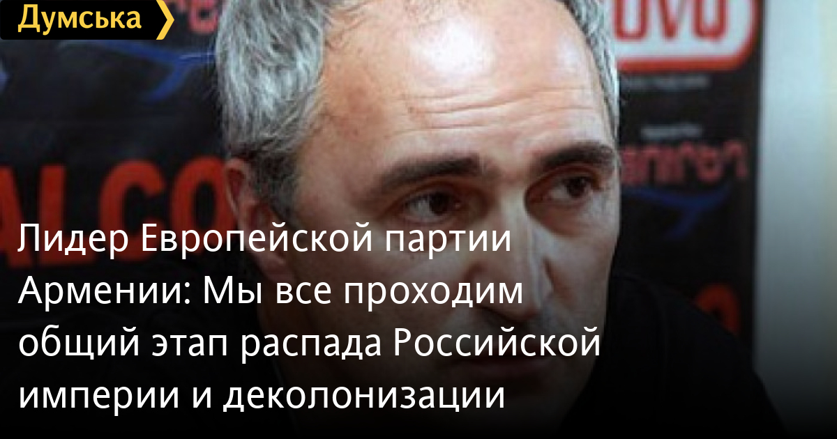 Тигран Хзмалян. Тут надо начать с предыстории вопроса — с двух клише, которые уже стали стереотипами, которые очень мешают диалогу двух гражданских обществ — Армении и Украины. Первый стереотип очень распространен не только в Украине, он является практически международным клише: якобы Армения является верным союзником и форпостом России. Это не так, это более чем миф. Это недоразумение. Армения — заложник РФ, ее пленница. И в этом смысле Армения — достаточно типичная постсоветская страна с одним отличием — дело в том, что мы все вместе: Украина и Армения, Грузия и Молдова, Азербайджан и Средняя Азия, страны Балтии, мы все проходим общий этап деколонизации, общий этап распада Российской империи.