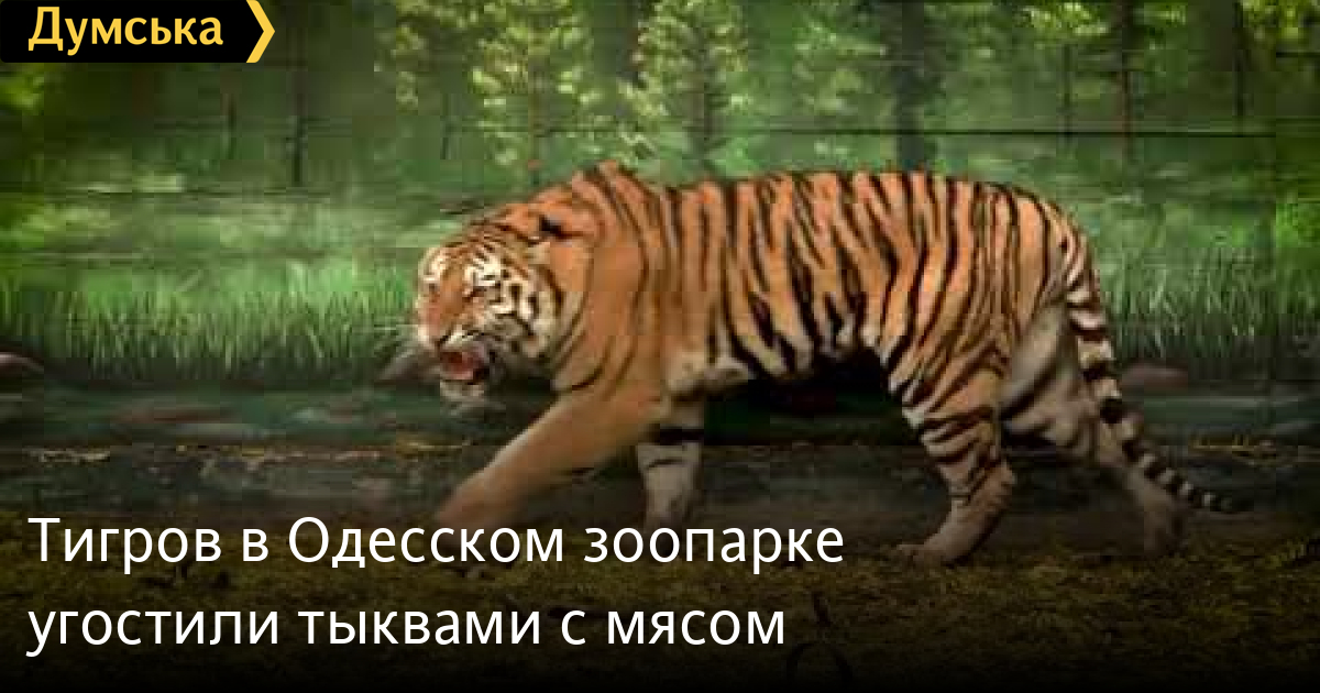 Амурских тигров, обитающих в Одесском зоопарке, угостили тыквами, внутрь которых положили мясо.