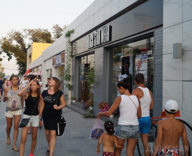 «Думская» убедилась, что магазин торговой марки Black Star Wear, принадлежащей российскому певцу Тимати, преспокойно работает на центральной аллее одесской Аркадии.