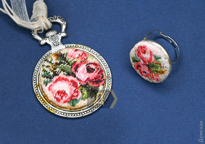 Талантливая одесская журналистка и театральный критик Мария Гудыма создает удивительной красоты броши, кулоны и серьги по старинным схемам в технике микровышивки (petite point).