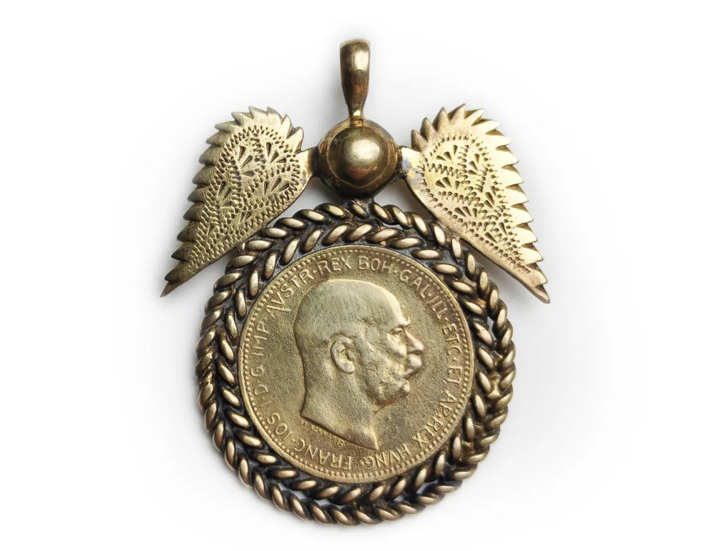 Дукач – это женское украшение в виде большой монеты, похожей на медаль, с металлическим бантом, усыпанным камнями. Дизайнеры бренда создают новые образцы медальонов, на которых отсутствуют имперские орлы.