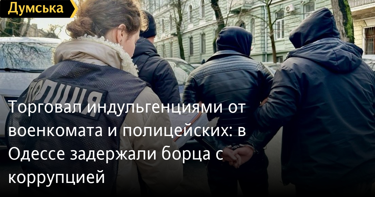 Торговал «индульгенциями» от военкомата и полицейских: в Одессе задержали «борца с коррупцией»Представителя одесской антикоррупционной общественной организации задержали по подозрению в злоупотреблении влиянием. Как сообщили в областной полиции, злоумышленник торговал членством в структуре — за денежное вознаграждение обещал повлиять на «нужных» людей и помочь клиентам со вступлением. Фигурант рассказал знакомому, что работает помощником главы организации, удостоверение которой якобы позволяет беспрепятственно проезжать блокпосты, избегать проверок военно-учетных документов, а иногда, по предварительному согласованию с руководством, даже ездить по городу в комендантский час. Сначала фигурант сообщил, что членство в организации будет стоить будущему «борцу с коррупцией» 1500 долларов, а впоследствии сделал скидку и взял только 500 долларов и анкетные данные для изготовления удостоверения. Уже на следующий день на одной из центральных улиц города правоохранители задержали злоумышленника во время передачи изготовленного удостоверения новому члену организации.