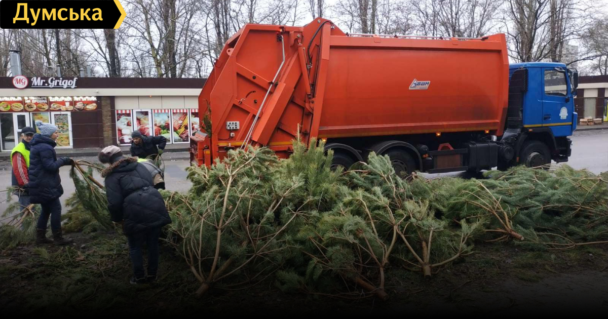 Елки вывозили с помощью мусоровозов, тракторов и грузовых машин.
