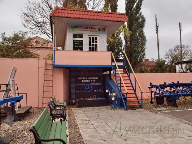 На пересечении улицы Краснова и безымянного переулка расположилась своего рода выставка различных промтоваров: сельхозтехники, детских площадок, скамеек и прочей садово-уличной мебели. При более подробном рассмотрении «выставка» оказалась магазином изделий одесских пенитенциарных учреждений — тюрем и СИЗО.