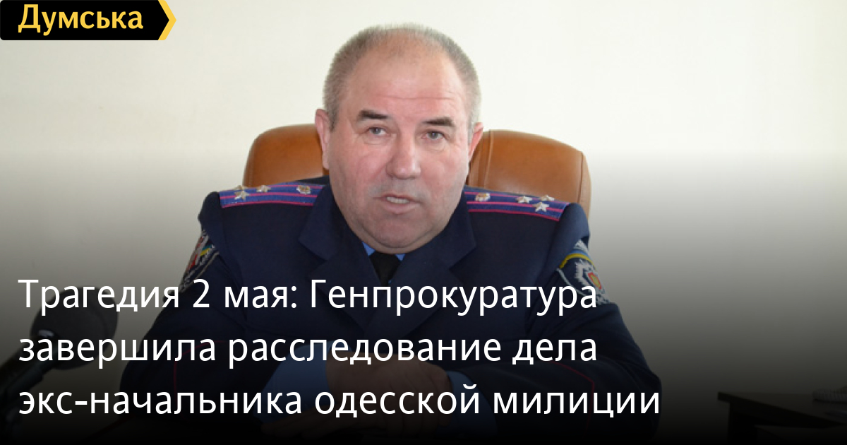 Сотрудники Главного следственного управления Генеральной прокуратуры Украины завершили досудебное расследование дела экс-начальника Одесского облуправления внутренних дел Петра Луцюка в связи с событиями 2 мая 2014 года.