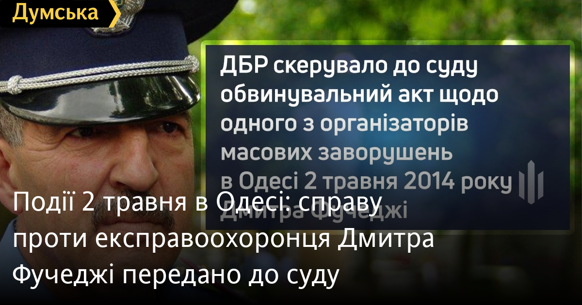 Правоохоронці встановили, що Фучеджі вступив в змову з представниками проросійського «Антимайдану» та, використовуючи своє службове становище, сприяв безперешкодному вчиненню ними 2 травня 2014 року масових заворушень біля Російського театру. Внаслідок цього вогнепальні поранення отримали вісім людей, шестеро з них загинули.