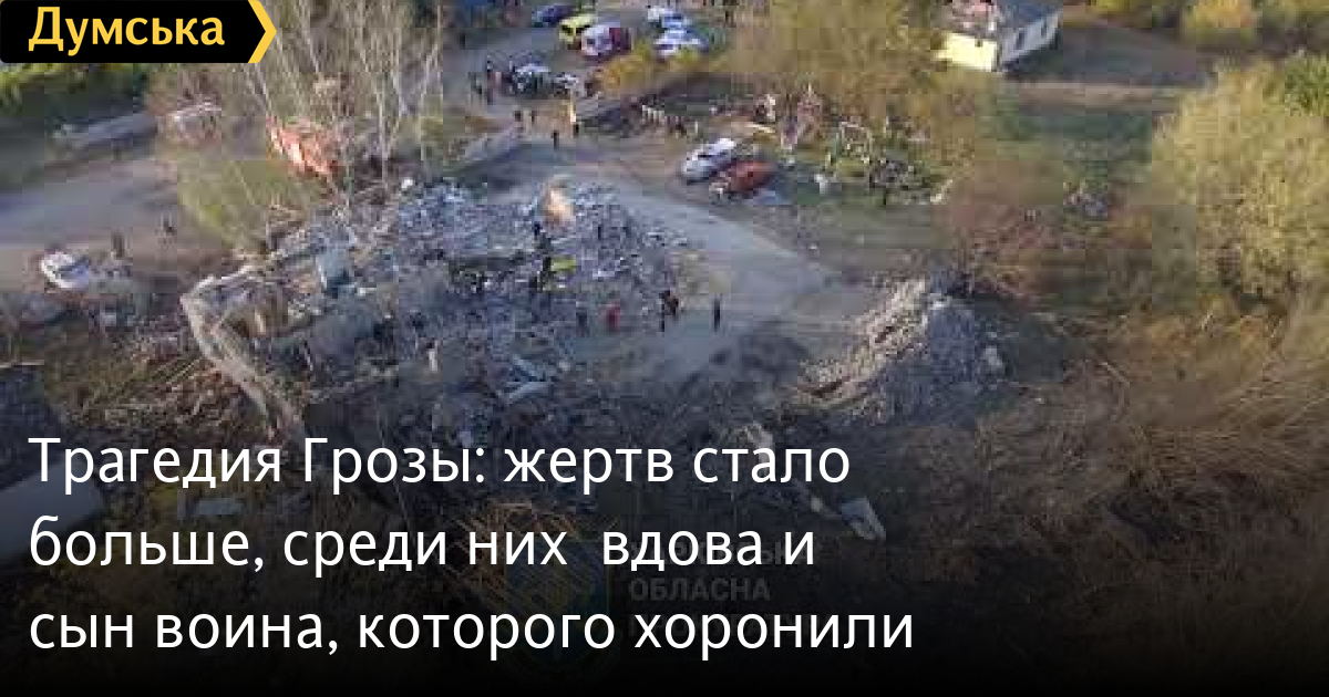 Трагедія Грози: жертв побільшало, серед них - вдова та син воїна, якого ховали (фото, відео)Кількість жертв атаки на село Гроза збільшилася до 52. На місці влучання ракети «Іскандер» в кафе продовжують працювати екстрені служби, повідомив голова Харківської обласної військової адміністрації Олег Синєгубов. «Завали вже розібрані, зараз відбувається ідентифікація частини тіл загиблих. В лікарнях наразі перебувають 6 постраждалих. Вони мають складні поранення, медики роблять усе необхідне, щоб їм допомогти», — заявив він. Напередодні люди зібралися на поминки після перепоховання українського військовослужбовця, пише «Інтерфакс-Україна» з посиланням на прессекретаря Харківської обласної прокуратури Дмитра Чубенко. «Поминки були через перепоховання загиблого українського військового. До цього він був похований у Дніпрі, а родичі хотіли провести перепоховання в селі, звідки він родом. Поховання організовувала родина загиблого військового, а саме син і дружина. Син перепохованого теж був військовим. Син разом зі своєю дружиною та матір'ю були в кафе і загинули внаслідок влучання ракети». Нагадаємо, 5 жовтня ворожа ракета влучила в кафе, в якому проходили поминки. В селі Гроза до трагедії проживало близько 330 осіб, тож в населеному пункті немає жодної сім'ї, яку б не зачепила атака російських нацистів. СМЕРТЬ РОСІЙСЬКИМ ОКУПАНТАМ! Помітили помилку? Виділяйте слова з помилкою та натискайте control-enter |