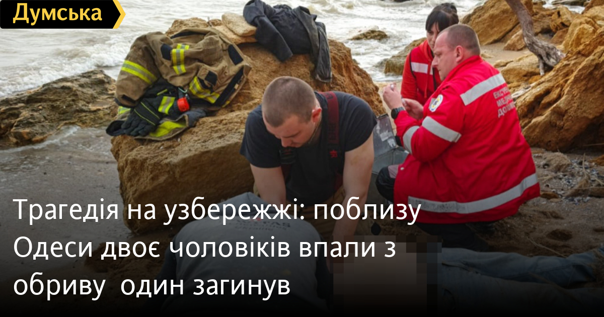 Трагедія на узбережжі: поблизу Одеси двоє чоловіків впали з обриву — один загинувДвоє чоловіків впали зі скелі під час прогулянки біля моря в Південному. Як повідомили в ДСНС, один із них помер. Рятувальники проводили серцево-легеневу реанімацію до прибуття медиків, але врятувати людину не вдалося. Іншого чоловіка вдалося стабілізувати, підняти нагору за допомогою спецобладнання та передати кареті швидкої допомоги. Зараз він перебуває під наглядом лікарів. СМЕРТЬ РОСІЙСЬКИМ ОКУПАНТАМ! Помітили помилку? Виділяйте слова з помилкою та натискайте control-enter |