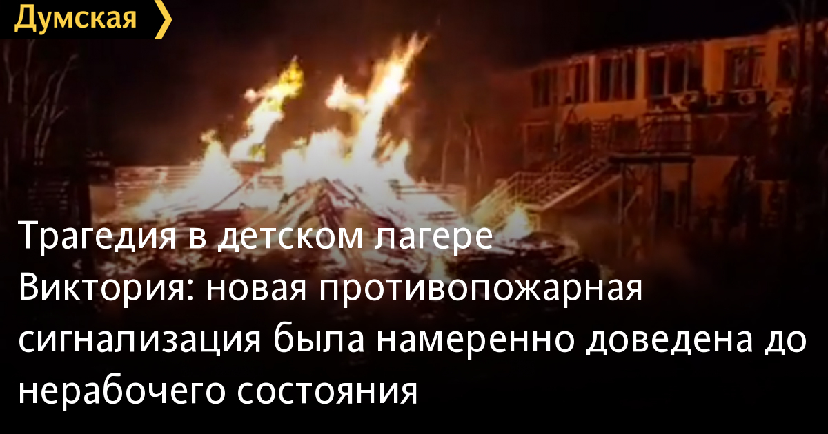 Трагедия в детском лагере «Виктория»: новая противопожарная сигнализация была намеренно доведена до нерабочего состояния