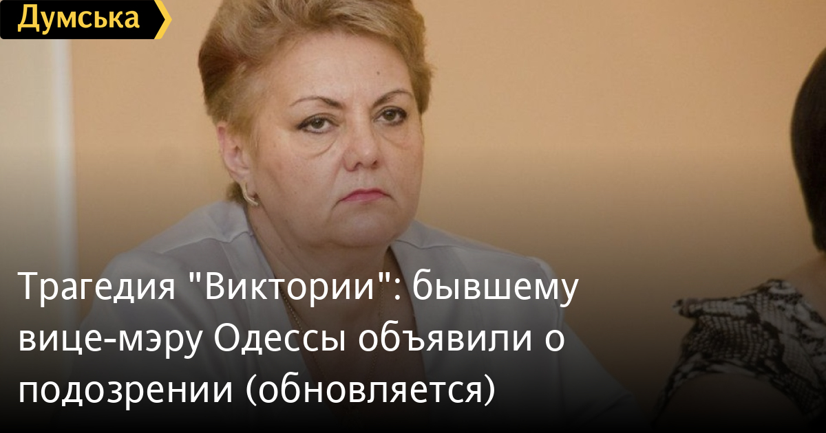 Бывший вице-мэр Одессы по гуманитарным вопросам Зинаида Цвиринько стала подозреваемой в одном из уголовных производств, открытых по факту трагедии в детском лагере «Виктория».