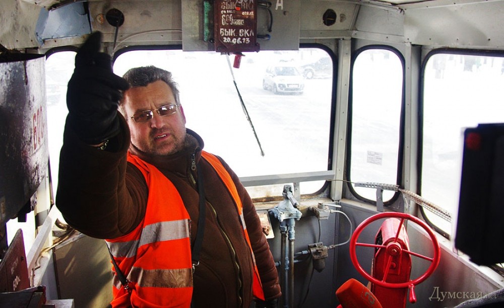 Мы уже писали о том, как сотрудники ГСЧС при помощи передовой техники помогают нерадивым автолюбителям выбраться из лап непогоды, пленившей их на юге области. Так вот, одесские коммунальщики тоже держат руку на пульсе стихии. И если о специфической подготовке рядовых дворников мы писали еще осенью, то о тяжелой технике, подконтрольной КП «Горэлектротранс», Одесса узнала только сейчас. Оказывается, одесские трамвайщики обладают целой ротой из девяти (один, правда, на ремонте) супер-эффективных снегочистителей. Именно благодаря этим чудо-машинам горожане имеют возможность относительно свободно пользоваться трамваями в непогоду. С виду они напоминают знаменитый ретро-трамвай — советский МТВ-82, переделанный под «пульман» начала века, — только уже и изящнее. Платформы красного цвета, с двух сторон оборудованные железными щетками и бульдозерными ковшами. Изнутри агрегат обладает эстетикой крепких шестидесятых. Естественно, советской эстетикой, объединяющей практичность с аскетизмом и напрочь отбрасывающей бытовые удобства. Все агрегаты находятся в прямом доступе водителя на расстоянии вытянутой руки, но ни кондиционеров/обогревателей, ни мягких кресел (и кресел вообще), ни кофейного аппарата конструкторы не предусмотрели. В общем, внутри все похоже, скорее, на заводскую каптерку, чем на салон трамвая. Управляют грозной машиной два водителя первого класса. Оба относятся к работе на очистителях как к почетной обязанности и регулярно заставляют молодых обучаться и этому ремеслу. Первый водитель, вроде как постарше, не особо интересуется журналистами. Он за рулем (условно выражаясь), ему не до того, да и не в восторге Виталий Викторович Горлыкин от всей это нездоровой шумихи вокруг рутинной работы. Второй – Руслан Владимирович Курбатов – помоложе: в трамвайном деле «всего» восемнадцать лет. Он отвечает за работу щеток, перевод стрелок в случае отказа автоматики и за все остальное, что не связано с собственно движением вагона. Пока первый, как капитан на мостике, с важным видом рассекает по снежным волнам (которые сам и поднимает), второй травит байки перед собравшимися журналистами. Например, по его словам, самый важный инструмент на борту – это ломик. Он должен быть всегда заточенным, поскольку им и лед колоть, и стрелки переводить, и случись что, можно болт разболтавшийся закрутить. Кстати, острота заточки лома отличает опытного водителя от «зеленого». Арсенал борца со снегом дополняют веник и резиновые перчатки. Первый банально нужен, чтобы подметать железные ступеньки трамвая. Они постоянно в снегу, а высота их – метр. Ну а у перчаток срок годности полгода — чтобы общаться с 600-вольтным оборудованием, они просто обязаны быть новенькими, сухими и необлупленными. Прочее оборудование не особо прихотливо, а потому исправно служит с 1968-го года. Предохранители «летят» редко, маршруты меняются редко, аварии по вине техники случаются тоже редко. Главное, чтобы очередной сугроб на пути не оказался покрытым снегом автомобилем. Их, увы беспечные водители бросают на путях до неприличия часто Автор — Алексей Кравцов СМЕРТЬ РОСІЙСЬКИМ ОКУПАНТАМ! Помітили помилку? Виділяйте слова з помилкою та натискайте control-enter |