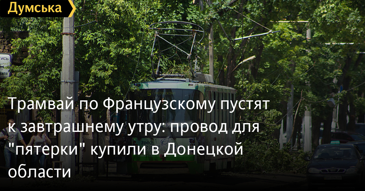 Пятый трамвай возобновит движение по Французскому бульвару и Генуэзской уже завтра к утру.