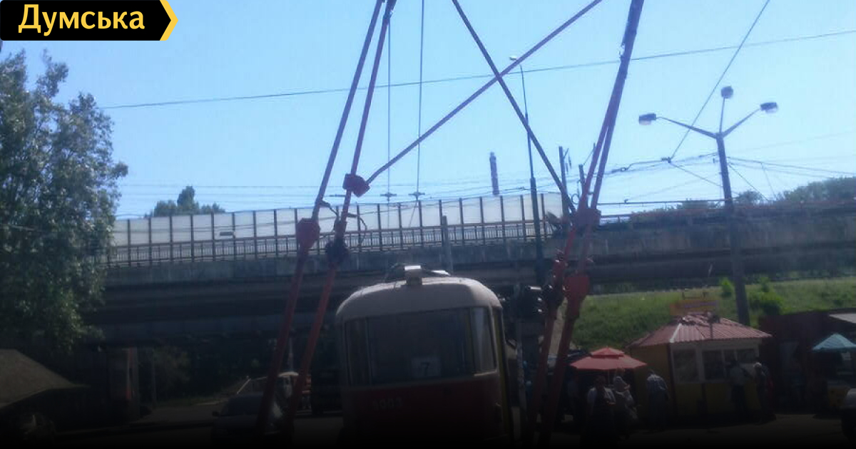 У одесского трамвая за Пересыпским мостом оторвались «рога»