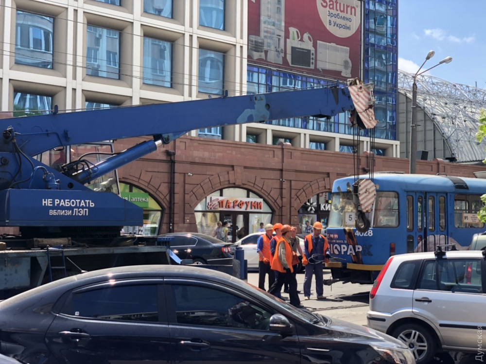 Как сообщают очевидцы, вагон подняли с помощью крана. Сейчас сотрудники КП «Одесгорэлектротранс» ремонтируют поврежденные рельсы. Движение транспорта в месте аварии затруднено.
