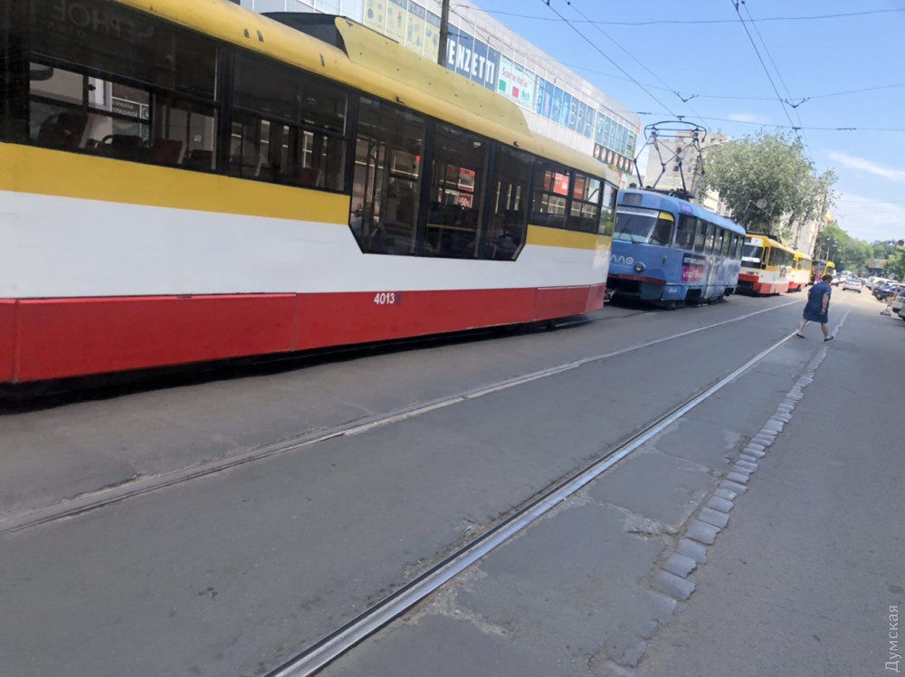 В понедельник днем на улице Пантелеймоновской в Одессе трамвай сошел с рельсов.