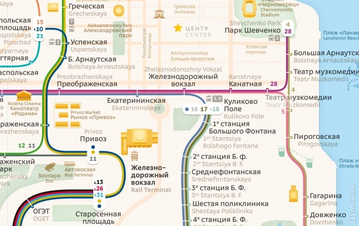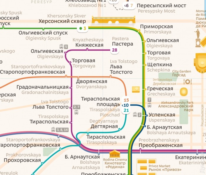Я, конечно, понимаю, что схема условна, но зачем на Преображенской зигзаг после Б.Арнаутской в сторону Привоза? ) И Тираспольская площадь где-то в стороне от Преображенской.Дизайнер точно из Одессы? ;)