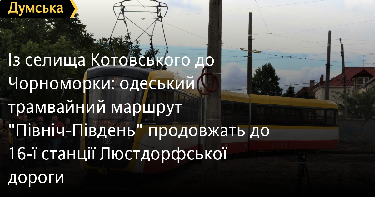 Трамвайний маршрут «Північ-Південь» продовжать до 16-ї станції Люстдорфської дороги, тобто до Чорноморки. Відбудеться це вже 29 липня, повідомляє офіційний сайт КП «Одесміськелектротранс».