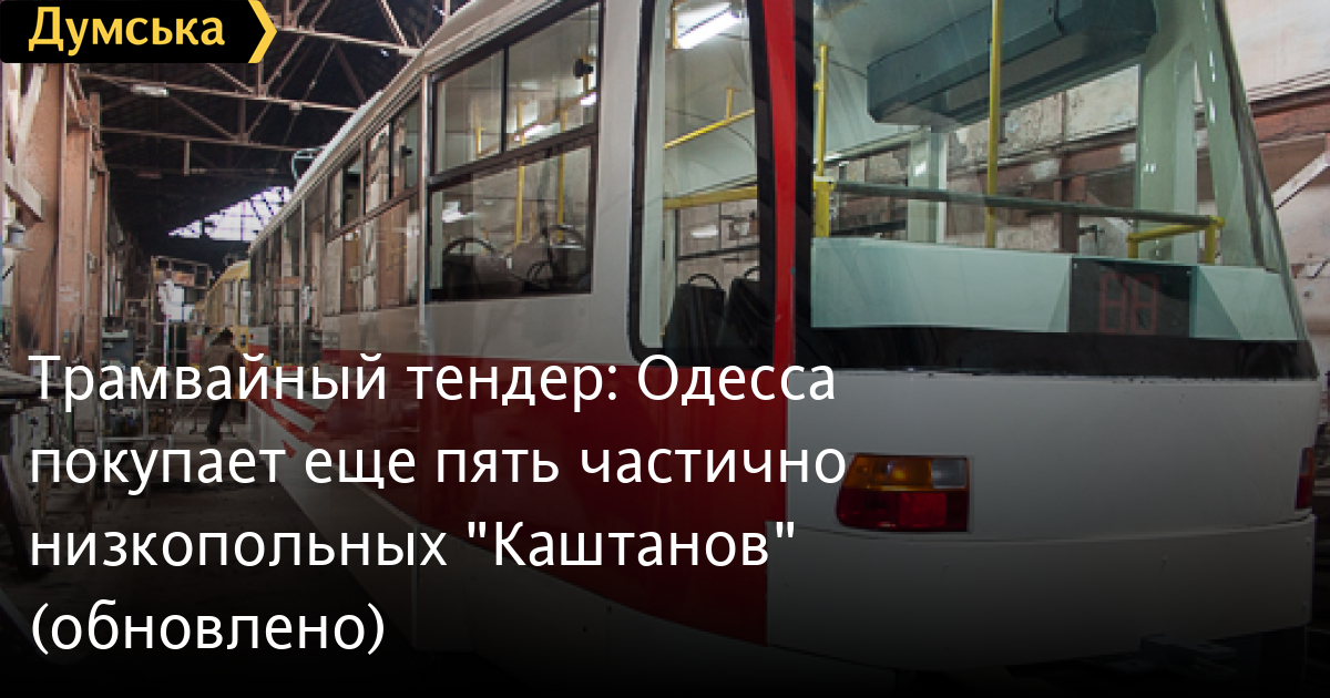 Она запросила за пять кузовов модели «Татра-Т3UA Каштан» 18,95 млн грн - по 3,71 млн. грн. за один. Отметим, что «Политехносервис» располагает собственным производством трамвайных вагонов — на Калушском заводе строительных машин в Ивано-Франковской области. В Одессе уже ездит один такой «Каштан».