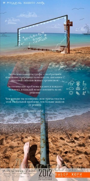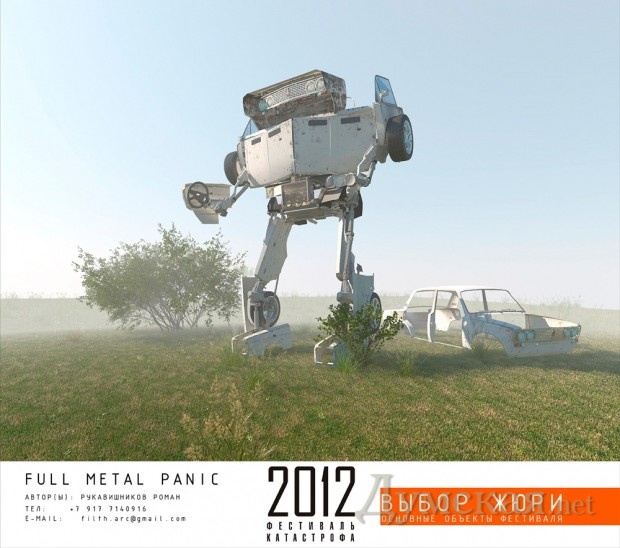 Кстати, к планетарной катастрофе, по мнению участников фестиваля, могут привести не только техногенные и природные катаклизмы, но и социальные болезни, например алкоголизм. Один из авторов посвятил этому негативному явлению композицию в виде огромной бутылки «Столичной» водки. И назвал ее «Пассивная катастрофа». По его словам, создание инсталляции стоило ему свыше 5 тыс грн.