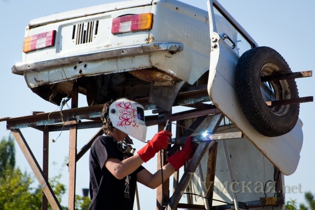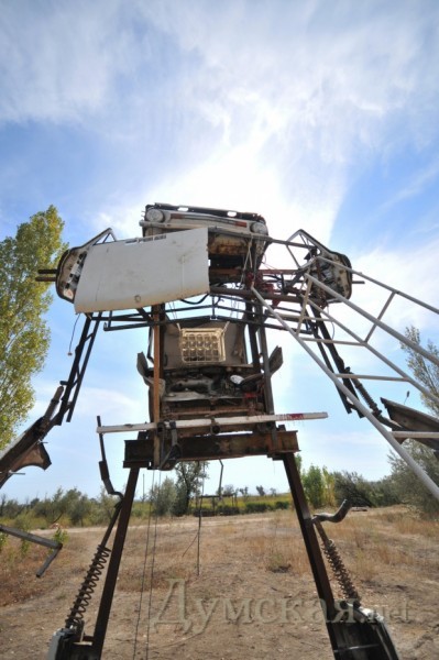 Самую необычную конструкцию, на наш взгляд, соорудили в Сычавке ребята из Йошкар-Олы. Они построили огромного трансформера, в основе которого — старенький «Запорожец». По словам архитекторов, машину они нашли после пяти дней поисков на одном из СТО Одессы. ЗАЗ обошелся им в 200 долларов.
