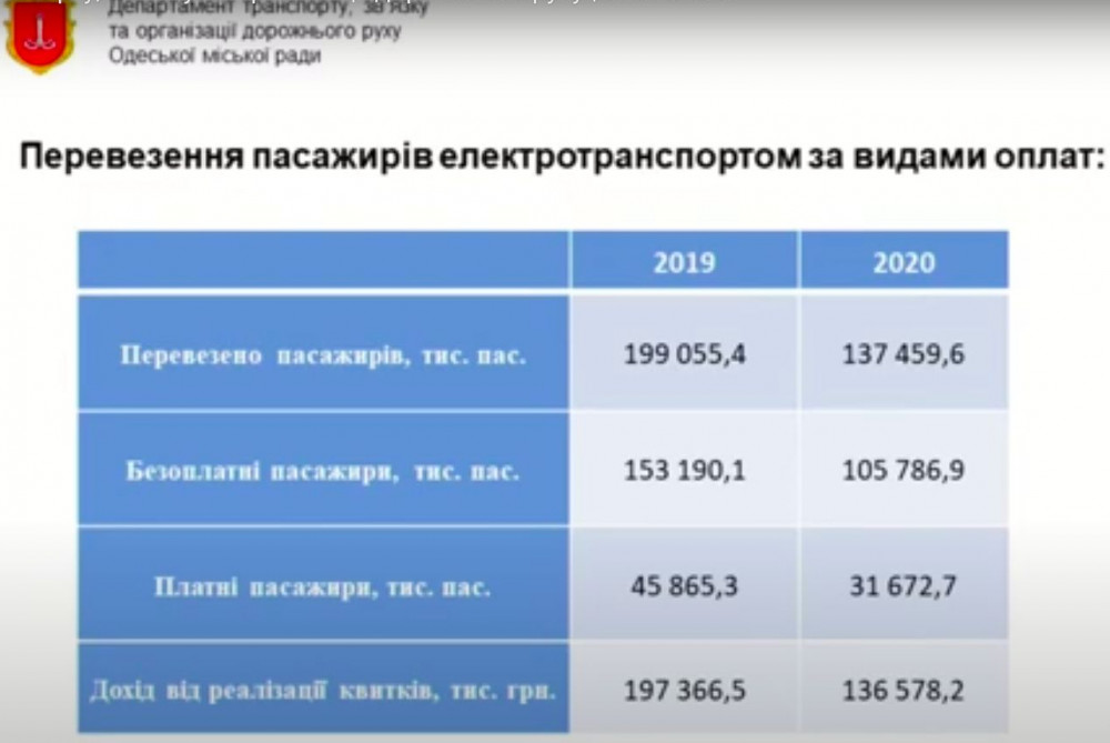 Всего, утверждают муниципальные транспортники, в 2020 году трамваи и троллейбусы перевезли 31 млн 672 тысяч 700 «платных пассажиров» и получили от продажи билетов 136 млн 578 тыс. 200 грн. Средняя стоимость платного проезда в одесском электротранспорте — 4,31 грн при цене билета 5 грн. Разница объясняется продажей проездных билетов. Как учитывается поток пассажиров, которые приобретают проездные, тоже сказать трудно.