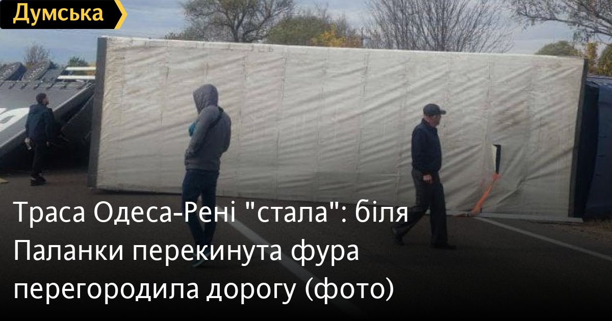 Траса Одеса-Рені «стала»: біля Паланки перекинута фура перегородила дорогуРух на трасі М-15 Одеса-Рені повністю заблоковано через фуру, що перекинулася. В результаті ДТП є постраждалі, повідомляють в Службі автодоріг регіону. ДТП сталася поблизу села Паланка, на 50 км автодороги Одеса-Рені (на Бухарест). Наразі рух в обидві сторони заблоковано. «Для відновлення проїзду на місці подій працює слідчо-оперативна група територіального підрозділу поліції, бригада швидкої допомоги, представники Державної служби України з надзвичайних ситуацій та представники Державної прикордонної служби України», — повідомляють в облавтодорі. СМЕРТЬ РОСІЙСЬКИМ ОКУПАНТАМ! Помітили помилку? Виділяйте слова з помилкою та натискайте control-enter |