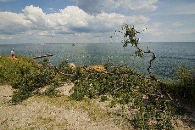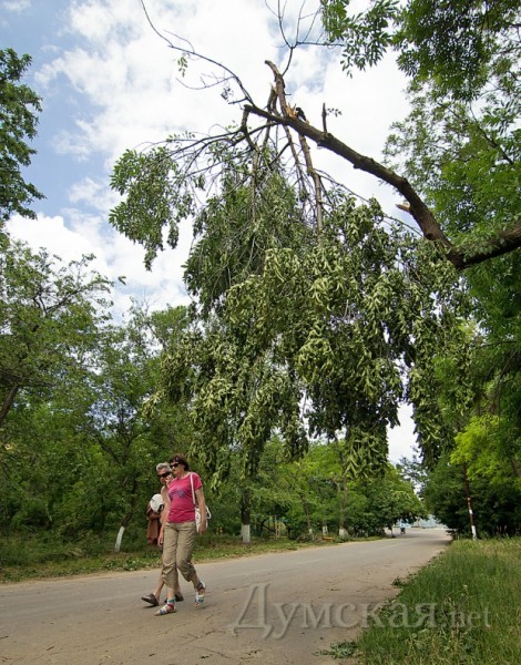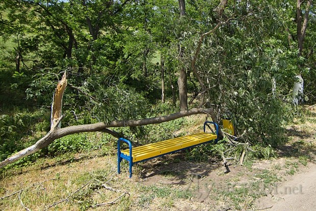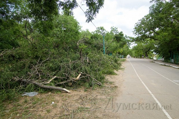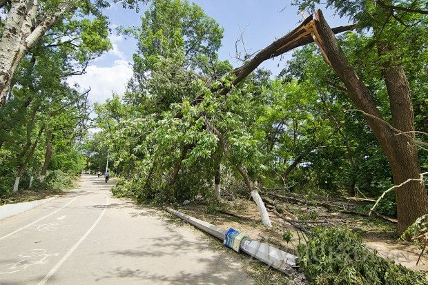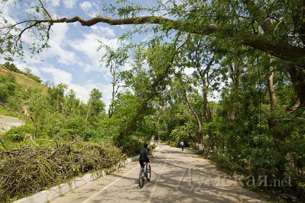 На приморские склоны и Трассу здоровья пришелся основной удар стихии 31 мая. Повреждено множество фонарных столбов и опор электропередачи, деревья опасно нависают над головами отдыхающих. У коммунальных служб сил хватило только на то, чтобы убрать упавшие ветки с самой Трассы здоровья на обочину.