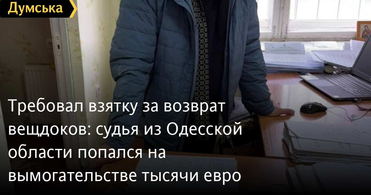 Требовал взятку за возврат вещдоков: судья из Одесской области попался на вымогательстве тысячи евроВзятку в размере тысячи евро требовал судья Ренийского районного суда Одесской области от фигуранта уголовного производства. Как сообщили в пресс-службе Офиса генпрокурора и СБУ, в конце января этого года служителю Фемиды поступили на рассмотрение материалы в отношении водителя, который перевозил сигареты без марок акцизного налога. Также суд должен был решить судьбу изъятого товара. Тогда фигурант заявил, что готов вернуть сигареты за взятку. В случае отказа платить он угрожал создать искусственные препятствия и уничтожить изъятое имущество. Правоохранители задержали судью на горячем сразу после получения оговоренной суммы. Ему сообщили о подозрении в получении неправомерной выгоды должностным лицом. Обвинение уже обратилось в Высший антикоррупционный суд с ходатайством о применении к подозреваемому меры пресечения в виде содержания под стражей. Судье грозит до десяти лет лишения свободы. СМЕРТЬ РОССИЙСКИМ ОККУПАНТАМ! Заметили ошибку? Выделяйте слова с ошибкой и нажимайте control-enter Новости по этой теме: 8 сентября 2025: 25 тысяч за «непригодность»: очередного сотрудника Одесского ТЦК поймали на взятке за снятие с воинского учета 9 августа 2025: Обещала «закрыть глаза» на нарушение: сотрудницу Одесской таможни поймали на взятке в четверть миллиона гривен 15 июля 2025: Требовала 400 евро за подделку документов для пенсии: в Одесской области чиновница попалась на взятке (фото, видео) |