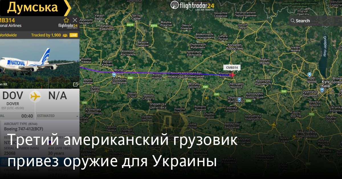 Третий американский грузовой самолет Boeing 747-412 (BCF) авиакомпании National Airlines доставил оружие для ВСУ.