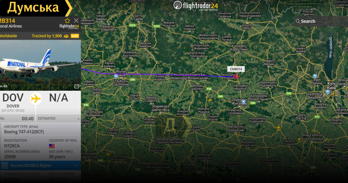 Этой ночью он вылетел с американской военно-воздушной базы Довер (Dover) и без дозаправки, в 15:50 приземлился в аэропорту Борисполь.