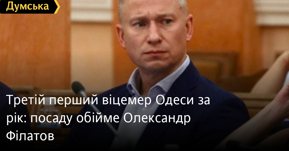 Третій перший віцемер Одеси за рік: посаду обійме Олександр ФілатовПризначення Олександра Філатова першим заступником одеського міського голови обговорять і, найімовірніше, підтримають депутати міськради на сесії 7 грудня. Відповідний проєкт рішення внесено до порядку денного сесії. Таким чином, Філатов стане третім чиновником, який обійме цю посаду протягом 2023 року. У січні посаду першого заступника Труханова залишив втікач Михайло Кучук, який обіймав її з 2020 року і наприкінці 2022-го, побоюючись кримінального переслідування в межах «нової одеської справи», таємно виїхав з України, після чого на початку січня подав у відставку. Потім посада перейшла Сергію Тетюхіну, який наприкінці листопада вступив до лав Сил оборони України. Зазначимо, раніше ми писали, що Філатов і так де-факто став першим віце-мером. Тепер же він офіційно закріпиться в цьому статусі. СМЕРТЬ РОСІЙСЬКИМ ОКУПАНТАМ! Помітили помилку? Виділяйте слова з помилкою та натискайте control-enter