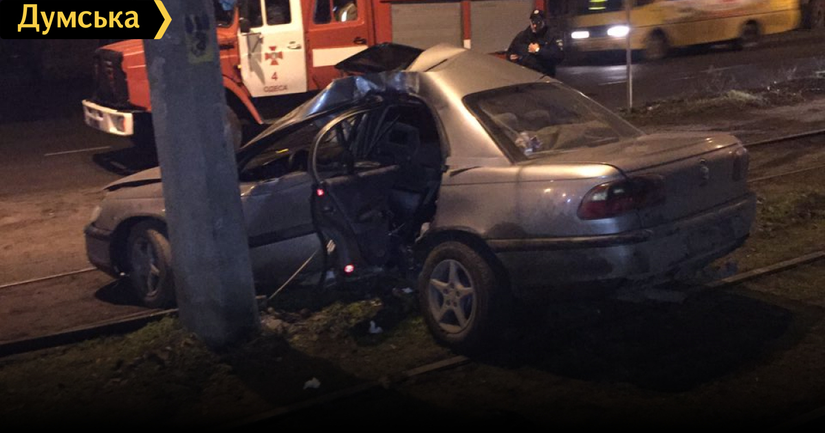 Три человека пострадали в ночном ДТП на Пересыпи: «Опель» врезался в столб