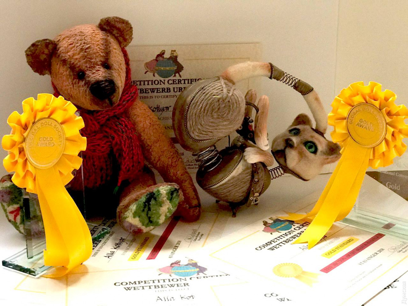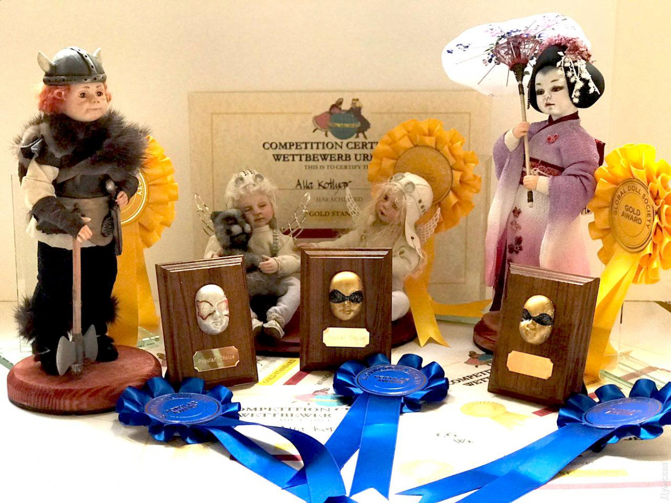 Пять золотых медалей и три приза зрительских симпатий получила одесская мастерица Алла Котляр на международном фестивале кукол, который проходил в норвежском городе Ставангер. Это далеко не первая большая победа Аллы Котляр. Например, два года назад она привезла с международного кукольного фестиваля Global Doll Society Festival два золота, серебро, две бронзы и три специальных награды. Творения ее души и рук уже давно представлены в коллекциях европейцев. Одесситы знают Аллу по сериям кукол «Коты, как люди» и «Женщины-кошки», по сфинксам в национальных костюмах разных стран, по многогранному миру литературных персонажей. International Doll Festival – это ежегодный конкурс-фестиваль игрушек, на котором мастера кукольного дела со всего мира представляют свои работы. Фото — UAHA (Украинская Ассоциация Ручного Творчества) СМЕРТЬ РОСІЙСЬКИМ ОКУПАНТАМ! Помітили помилку? Виділяйте слова з помилкою та натискайте control-enter |
