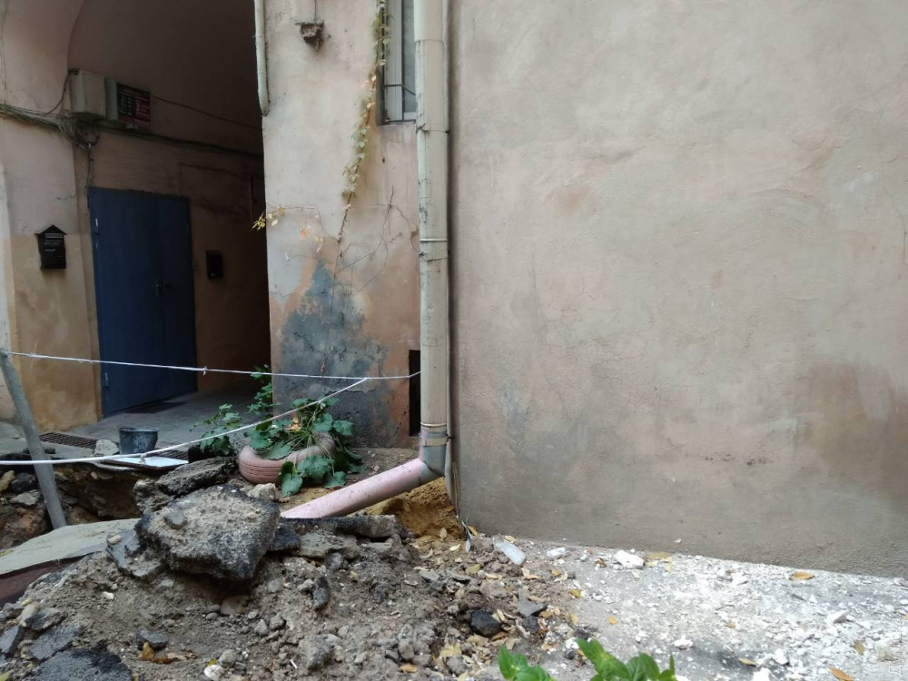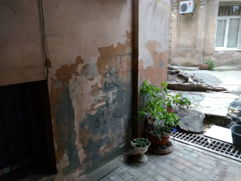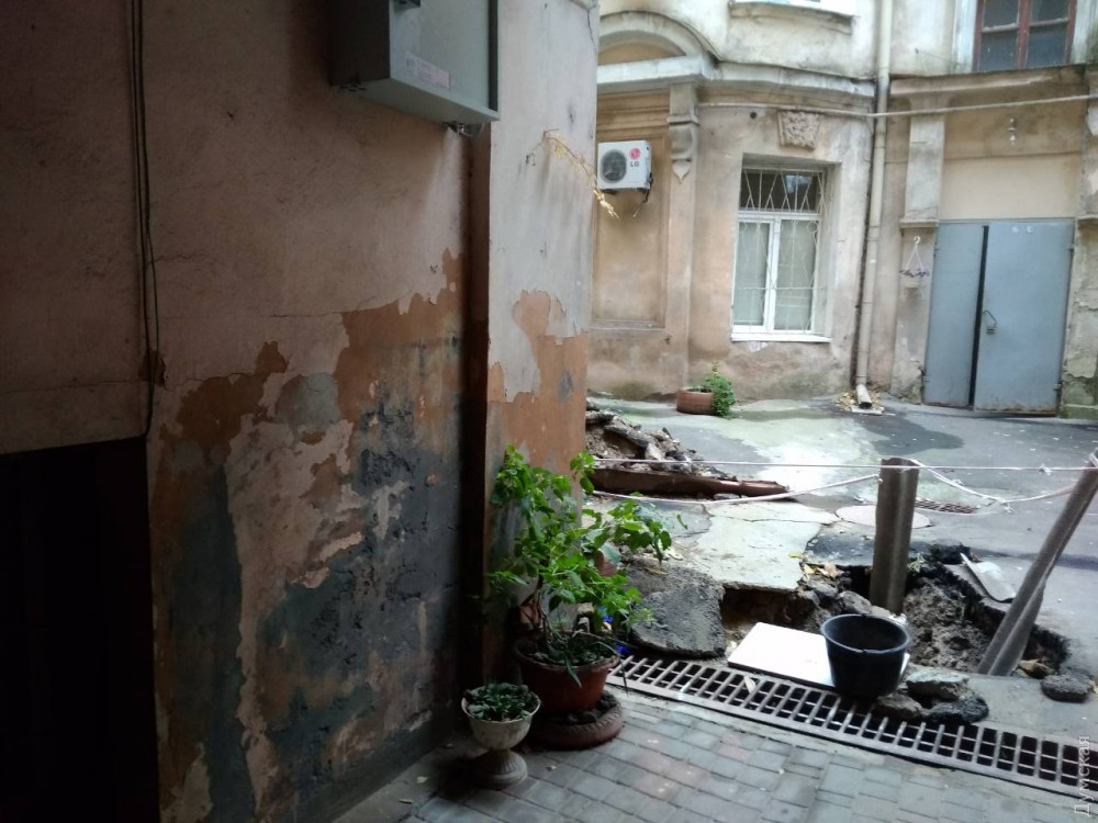Как сообщили «Думской» одесситы, в конце этого лета во внутреннем дворе внезапно начал проседать асфальт, а потом произошел обвал.