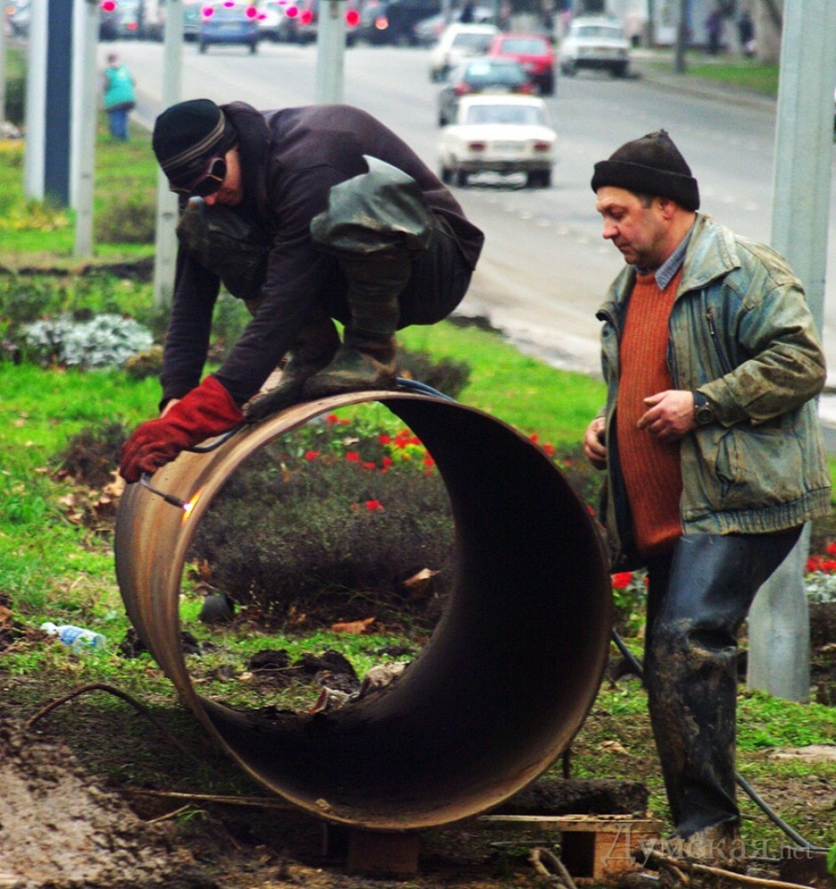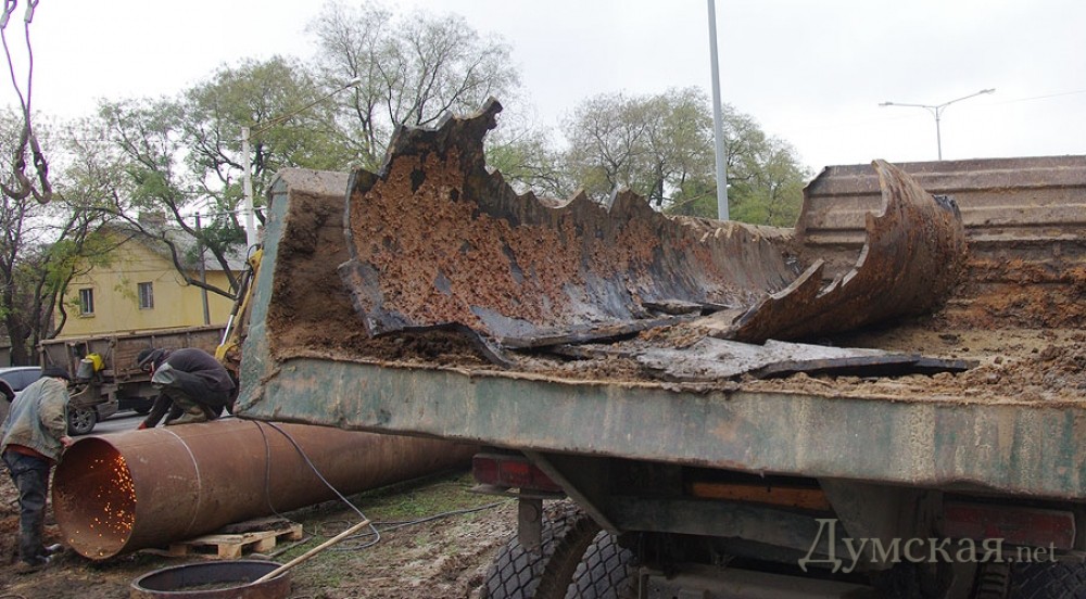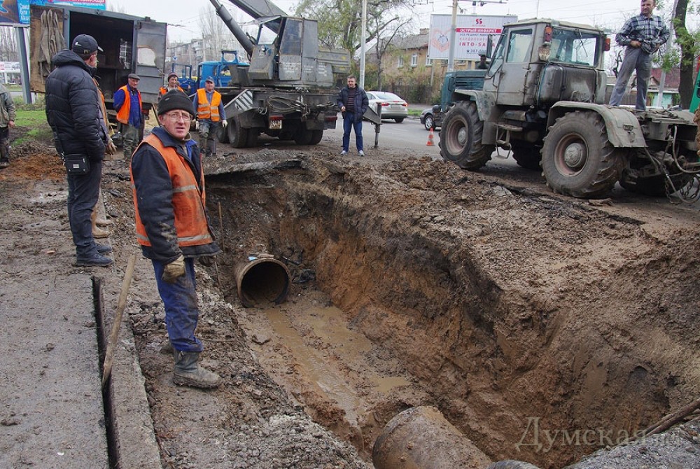 На Люстдорфской дороге Одессы продолжаются работы по ликвидации аварии на магистральном водоводе. Напомним, вчера прорыв этой большой трубы диаметром 900 миллиметров привел к затоплению стометрового участка Люстдорфской между 2-й и 3-й станциями и прилегающего к нему частного сектора. Сегодня о потопе напоминают лишь аварийщики и спецтехника «Инфокса» да грязь с характерным запашком. Собственно ремонт ведется в яме двухметровой глубины. Рабочие уже извлекли обломки лопнувшей трубы (они выглядят не такими уж и старыми) и погрузили их на самосвал. Новенький отрезок приварят до конца дня. Тогда же обещают и восстановить водоснабжение. Как утверждают в «Инфоксводоканале», сейчас воды нет только в частных домах на улицах Александра Невского, Комарова и в Аэродромном переулке, а также в некоторых высотках «Вузовского». Жители обезвоженных районов могут затариться живительной влагой из двух цистерн, которые установлены в районе «Промсвязи» и на Александра Невского. СМЕРТЬ РОССИЙСКИМ ОККУПАНТАМ! Заметили ошибку? Выделяйте слова с ошибкой и нажимайте control-enter |