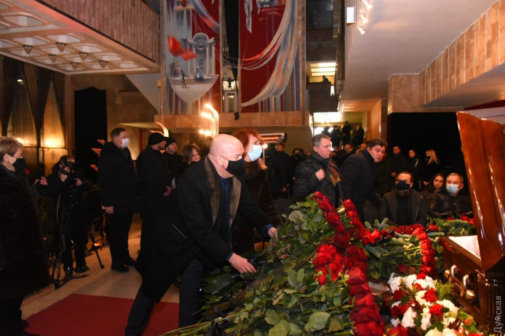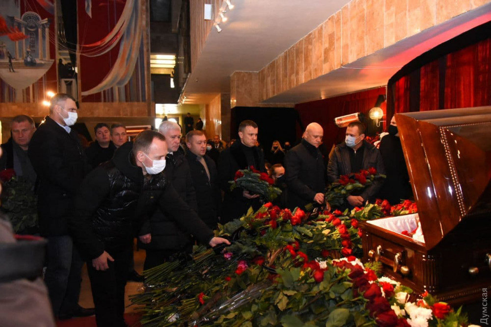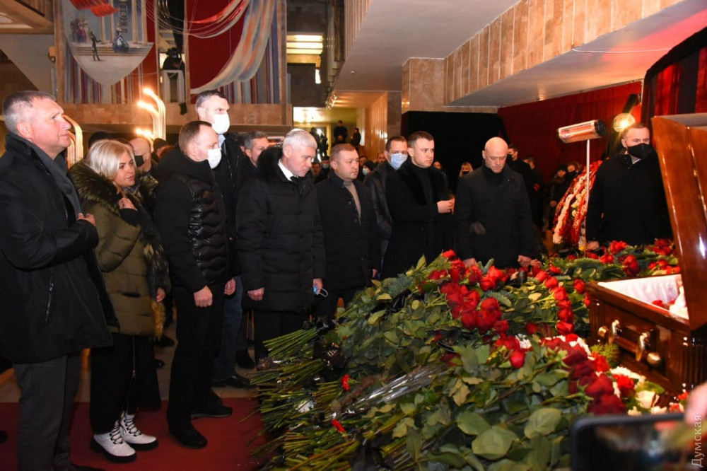 Одесские политики подошли к усопшему в общей очереди, рядом с мэрами Киева Виталием Кличко и Днепра Борисом Филатовым и положили цветы с черными лентами.