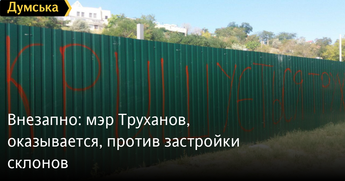 «Провел совещание по незаконной застройке территорий города. В первую очередь, строек на склонах 13-й станции Б. Фонтана, на ул. Глушко, 17а и ул. Рассвета. По итогам совещания запретил выдавать разрешительные документы до момента, пока застройщик не предоставит проект объекта, который планируется на участке», — отмечает Труханов.